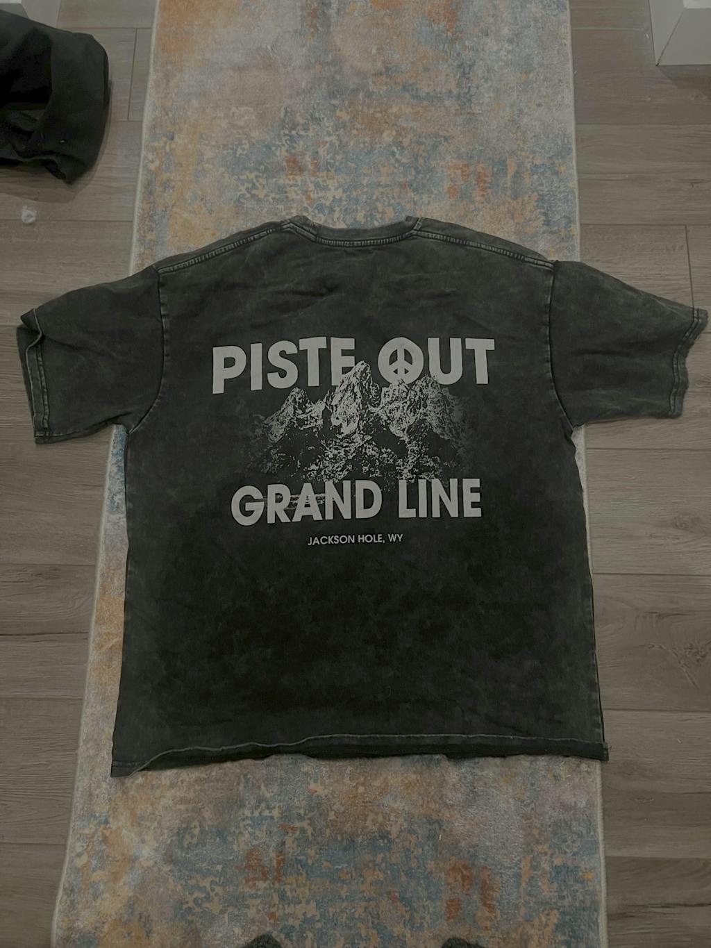 The Grand Line Tee pays tribute to Jackson Hole’s iconic Teton Range, the kind of peaks that pull you in, test your edge, and make you earn every line. The distressed mountain artwork mirrors the Tetons’ raw texture, while the peace-sign “O” in Piste Out nods to that balance between chaos and calm every skier chases.
